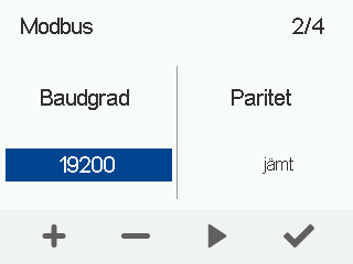 - Välj Modbus-inställningar med pilknapparna: