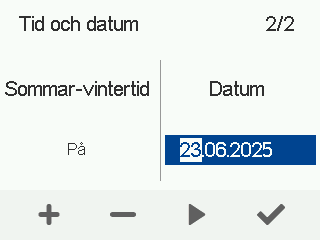 - Ställ in dag med Plus och Minus-knapparna.