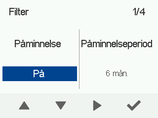 - Ställ in påminnelseintervallet i månader i Påminnelseintervall fältet med hjälp av Pil-knapparna. Du kan ställa in påminnelseintervallet på mellan 1–12 månader. Fabriksinställningen är 6 månader.