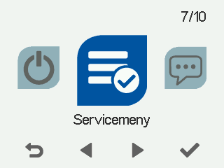 - Välj Servicemeny med pilknapparna.
