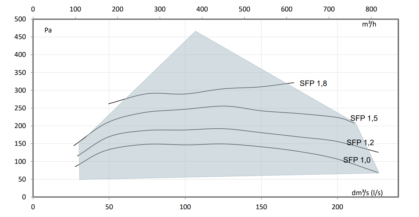 (kW m3/s). Vid ett lägre totaltryck är SFP