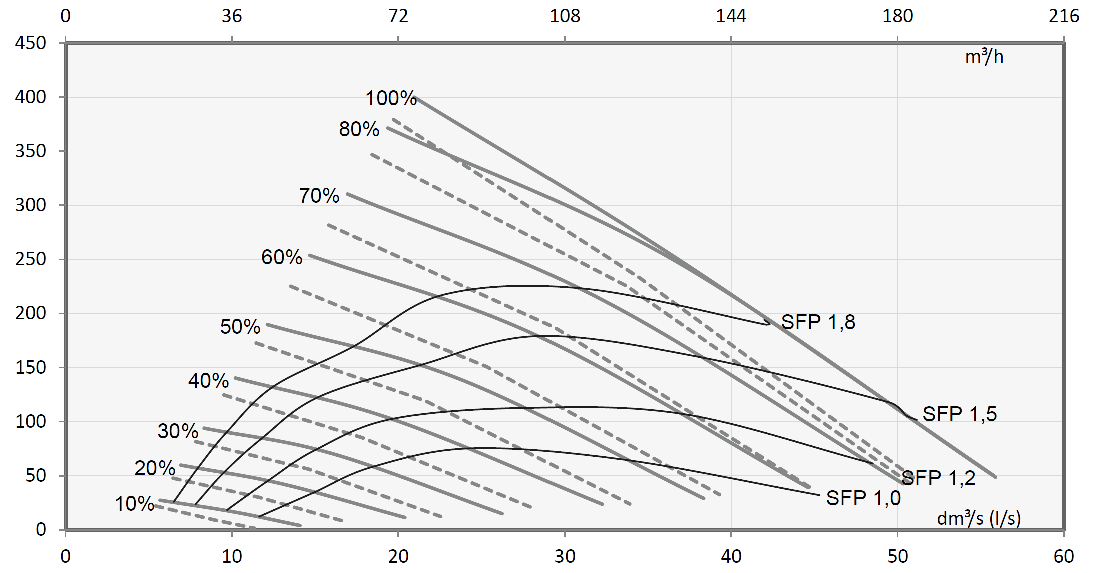 SFP = Upptagen effekt (totalt) (W) Luftflöde (max) ( dm 3 /s)