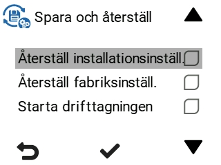 - Återställ installationsinställningar — Återställer ventilationsaggregatets inställningar som konfigurerats under installationen.