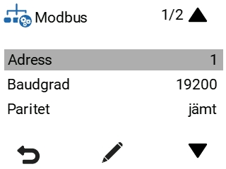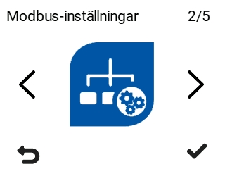 5. Välj Modbus-inställningar med pilknapparna.