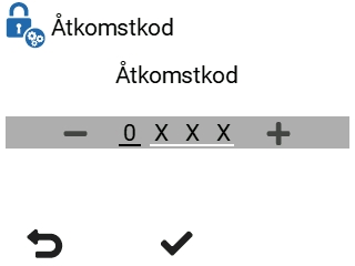 Med hjälp av åtkomstkoden begränsas användningen av ventilationsaggregatets funktioner på olika åtkomstnivåer. Om begäran om åtkomstkod aktiveras och åtkomstnivån är begränsad eller normal, måste användaren mata in åtkomstkoden innan vissa inställningar kan ändras.