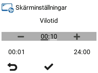 - Använd Plus och Minus-knapparna för att ställa in Viloläge i minuter.