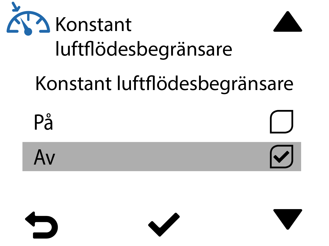 Som standard är den konstanta luftflödesbegränsaren avaktiverad. När